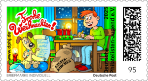 Ebertsheim Bereits in den letzten Jahren hat die Deutsche Philatelisten-Jugend (DPhJ) Weihnachtspost-Schreiber mit einer speziellen Weihnachtsmarke unterstützt. Auch in diesem Jahr gibt es eine DPhJ-Weihnachtsmarke. Sie möchten Ihrer Weihnachtspost den besonderen „Sound“ verleihen? Dann bestellen Sie schnell – jedoch spätestens bis zum 31. Oktober 2025 – bei Heinz Wenz (Henneystr. 35 a, 54293 Trier, wenz@ dphj.de). Bestellungen sind auch auf der DPhJ-Homepage unter weihnachts marke.dphj.info möglich. Bei späterem Eingang der Bestellung kann leider keine rechtzeitige Lieferung garantiert werden.