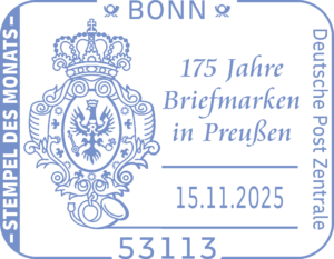 (BDPh) Der Stempel des Monats November erinnert an das Erscheinen der ersten preußischen Briefmarken vor 175 Jahren, am 15. November 1850.